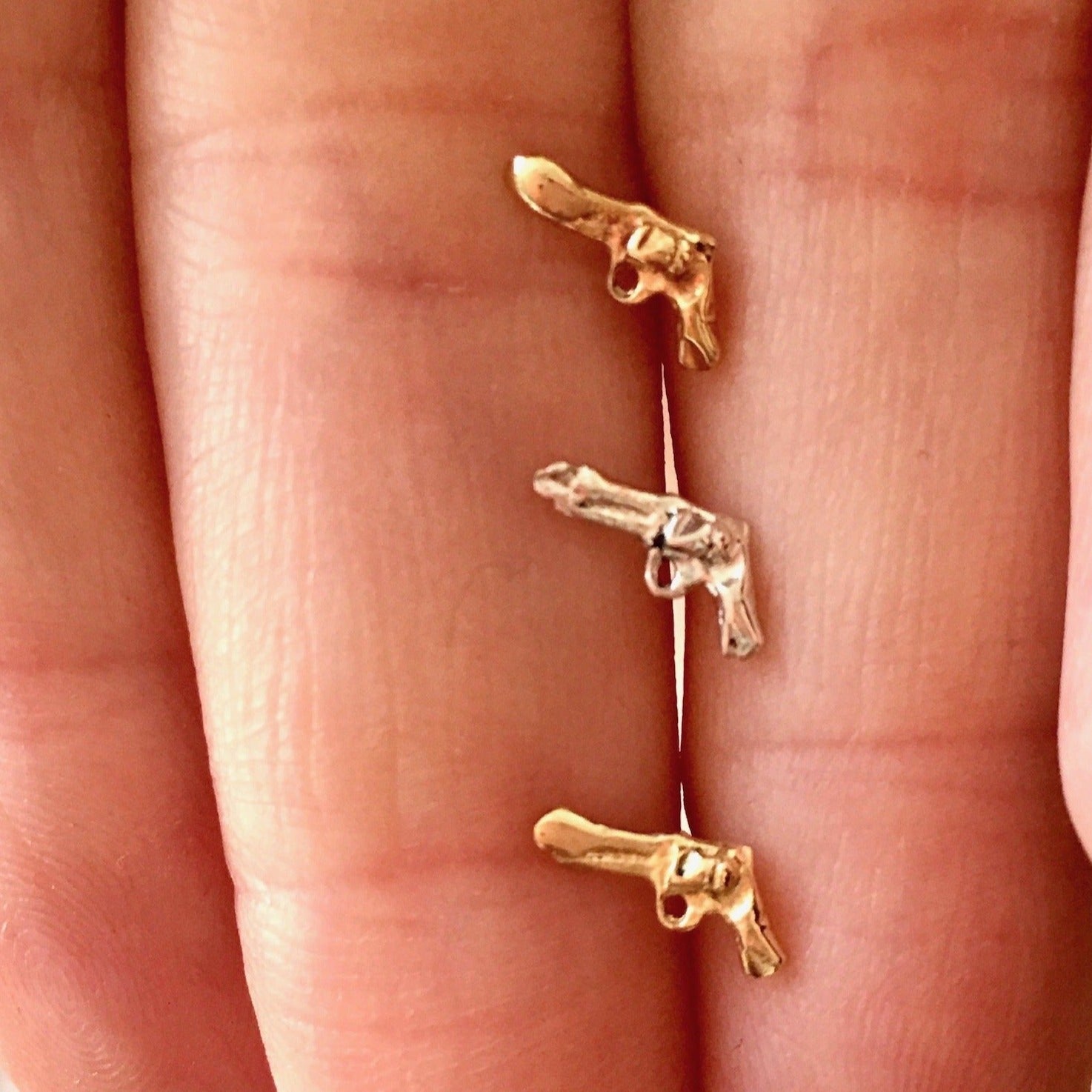 Pair of handmade gun ear studs approx. 9 x 4mm. Available in 14k yellow gold, 14k white, 14k rose gold and sterling silver.